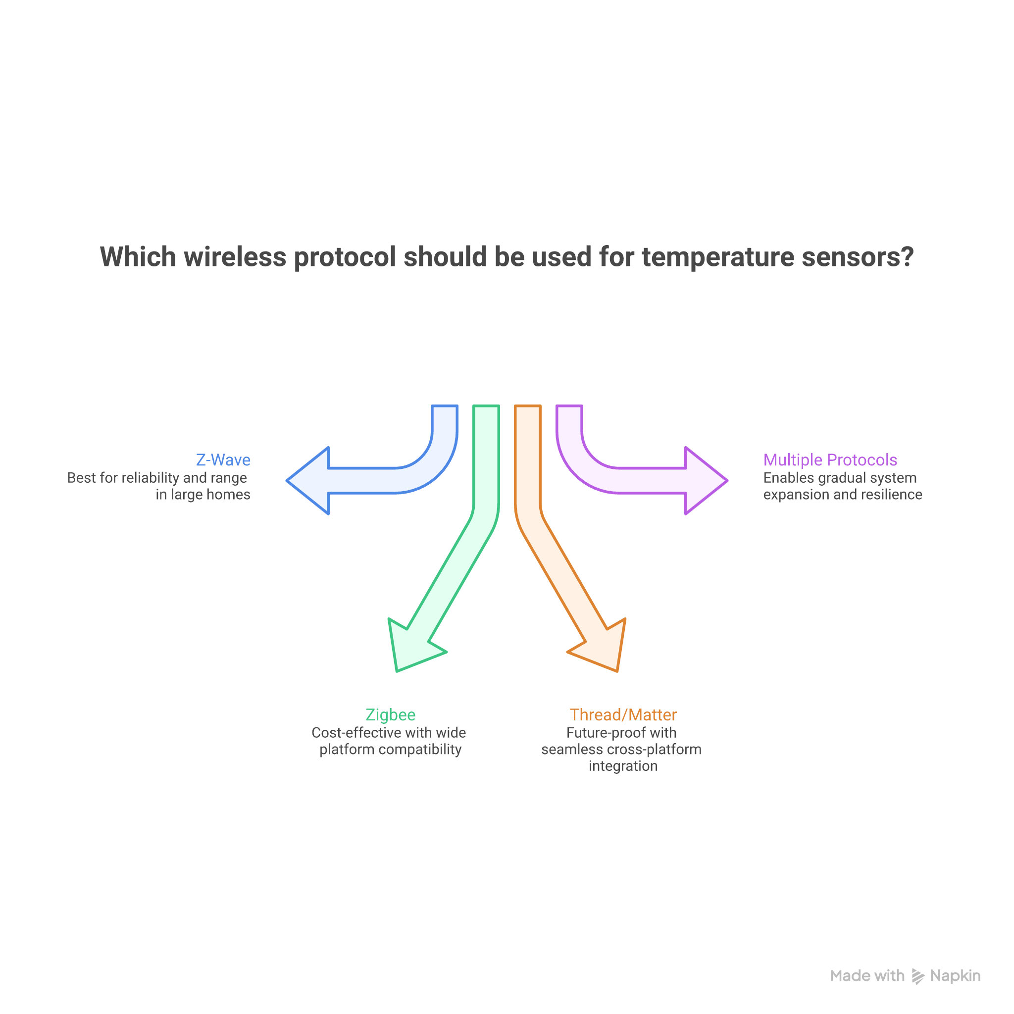 - Z-Wave excels in reliability and range for large homes