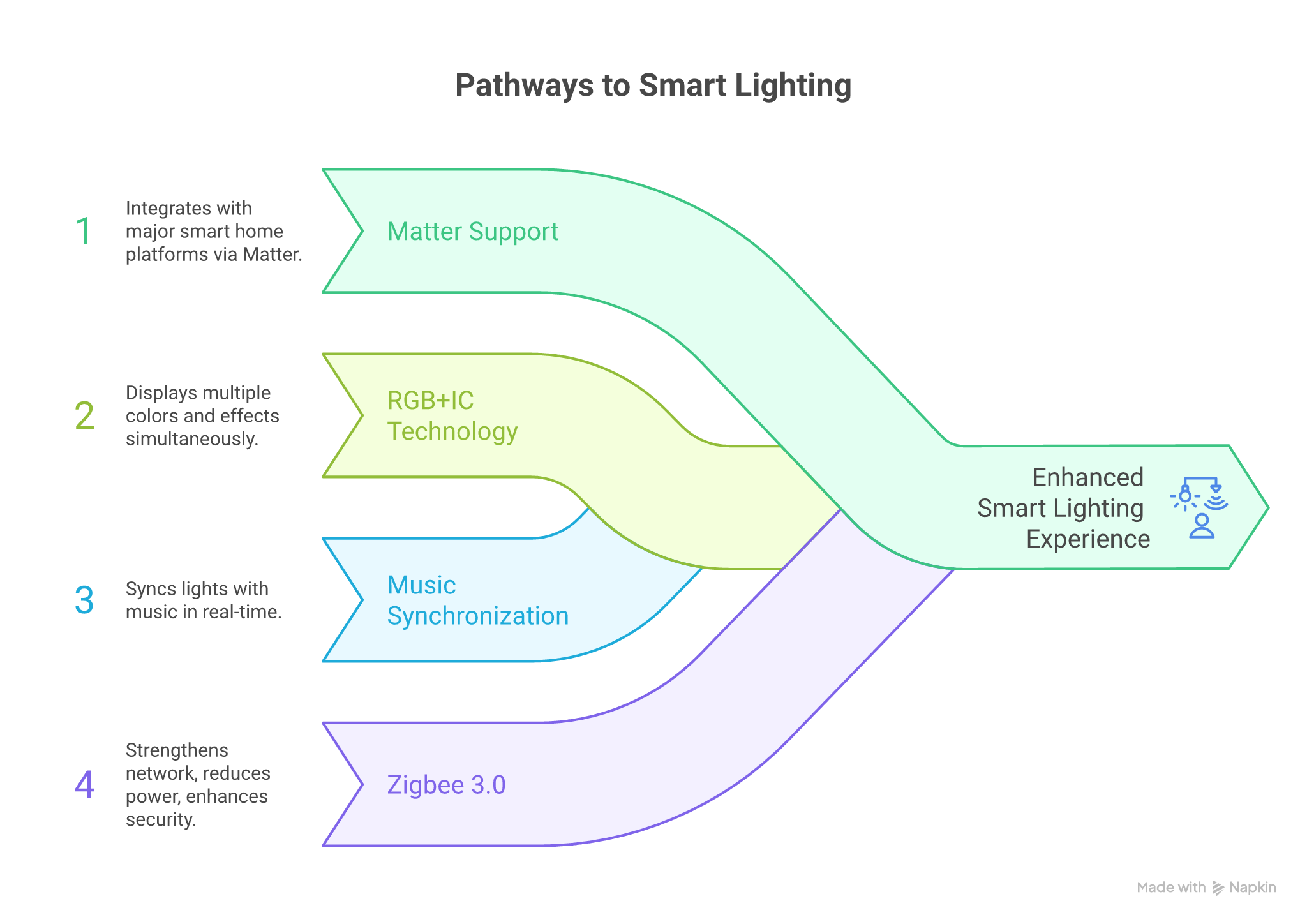 Landlords and property managers will appreciate the system's non-permanent installation method and premium features that add property value without requiring structural modifications. The Zigbee protocol ensures reliable operation even in dense residential environments where Wi-Fi congestion might affect other smart lighting solutions.