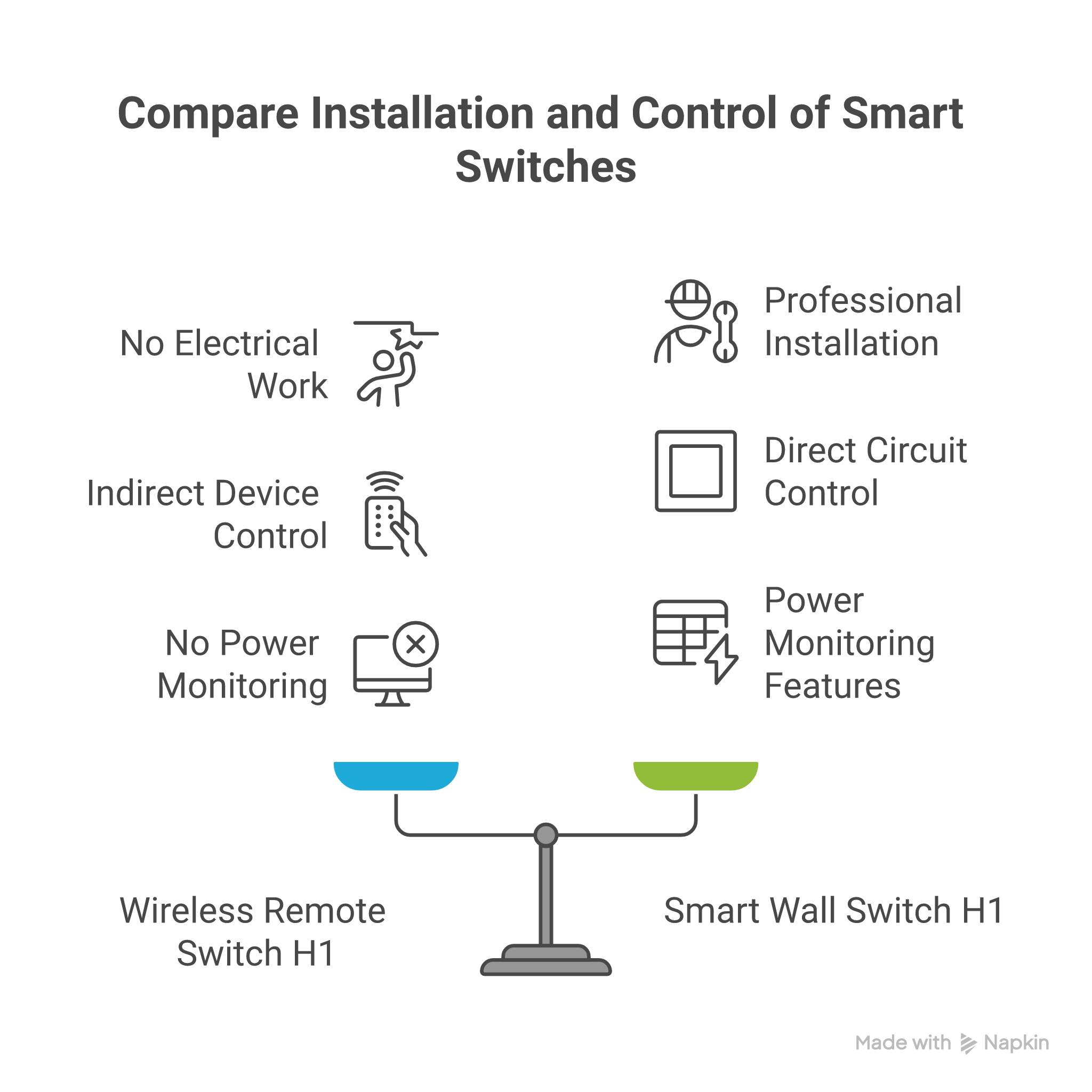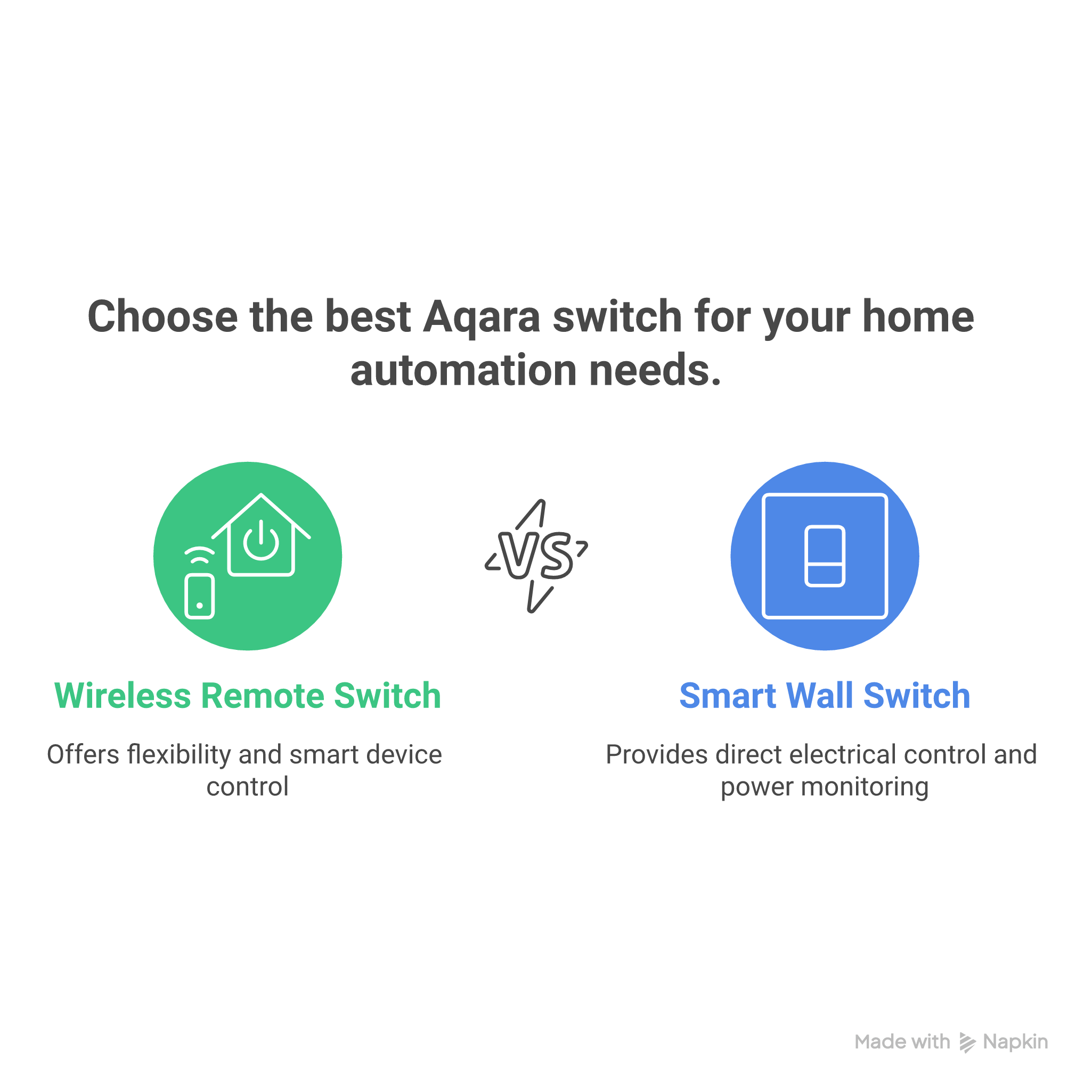 Both Aqara switches excel in their intended roles, but the 'better' choice ultimately depends on your specific circumstances and smart home goals. The Wireless Remote H1 shines for renters, temporary setups, and situations requiring flexible, portable control, while the Wall Switch H1 delivers superior performance for permanent installations with advanced features like power monitoring.