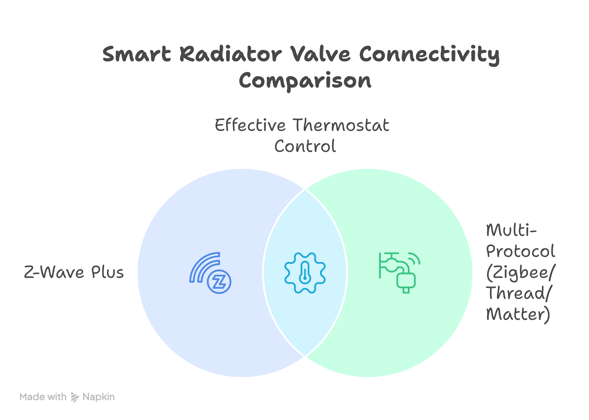 Both approaches deliver effective thermostat control, but Z-Wave's dedicated frequency often provides more consistent performance in dense wireless environments, whilst multi-protocol devices offer broader ecosystem integration opportunities for comprehensive intelligent heating systems.