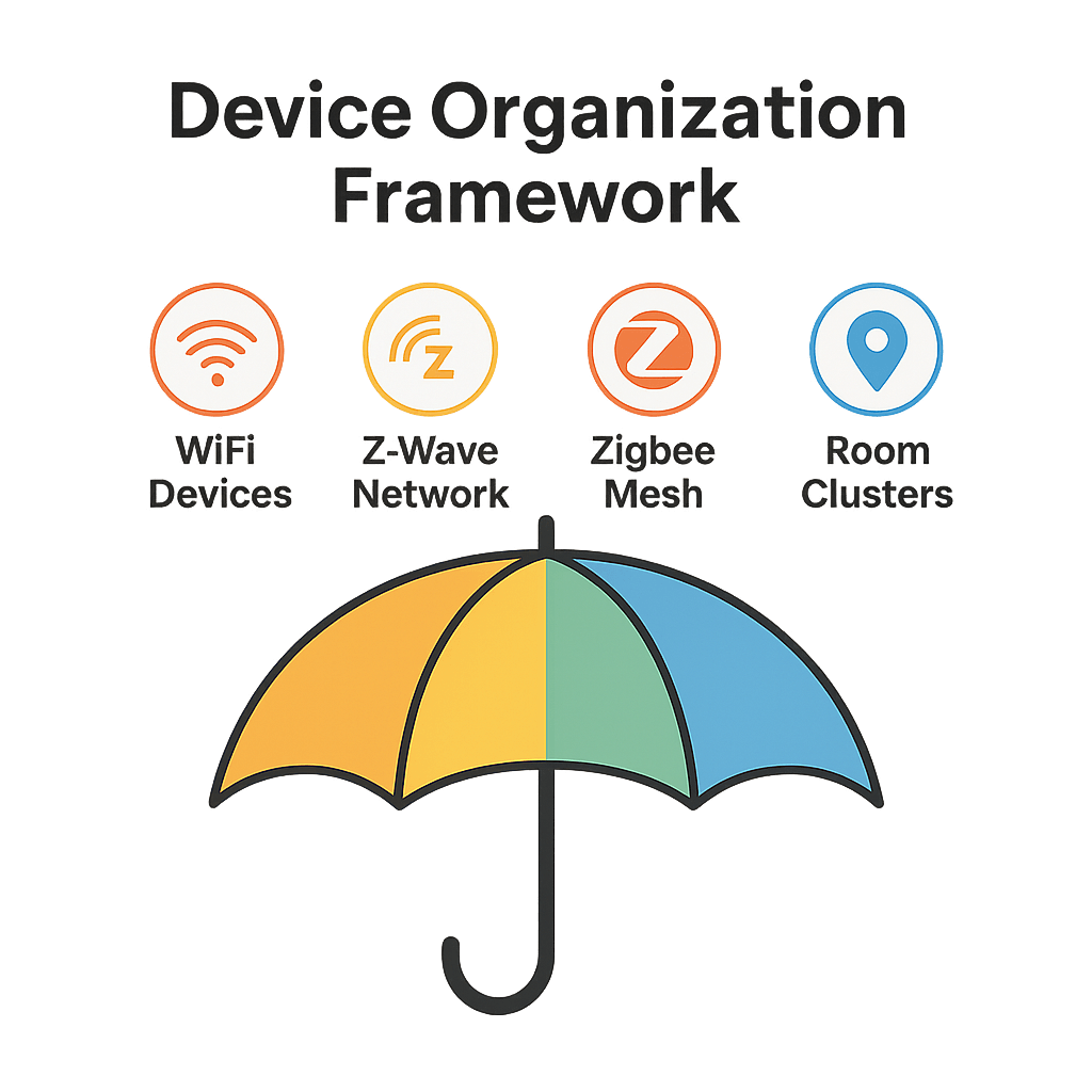- Protocol-based grouping separating Z-Wave, Zigbee, and WiFi device networks