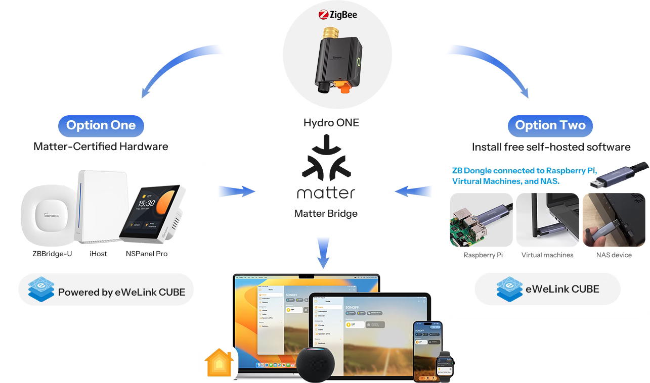 Integrates SONOFF Zigbee devices into the Apple ecosystem through a Matter Bridge, enabling smooth and unified control across connected devices.