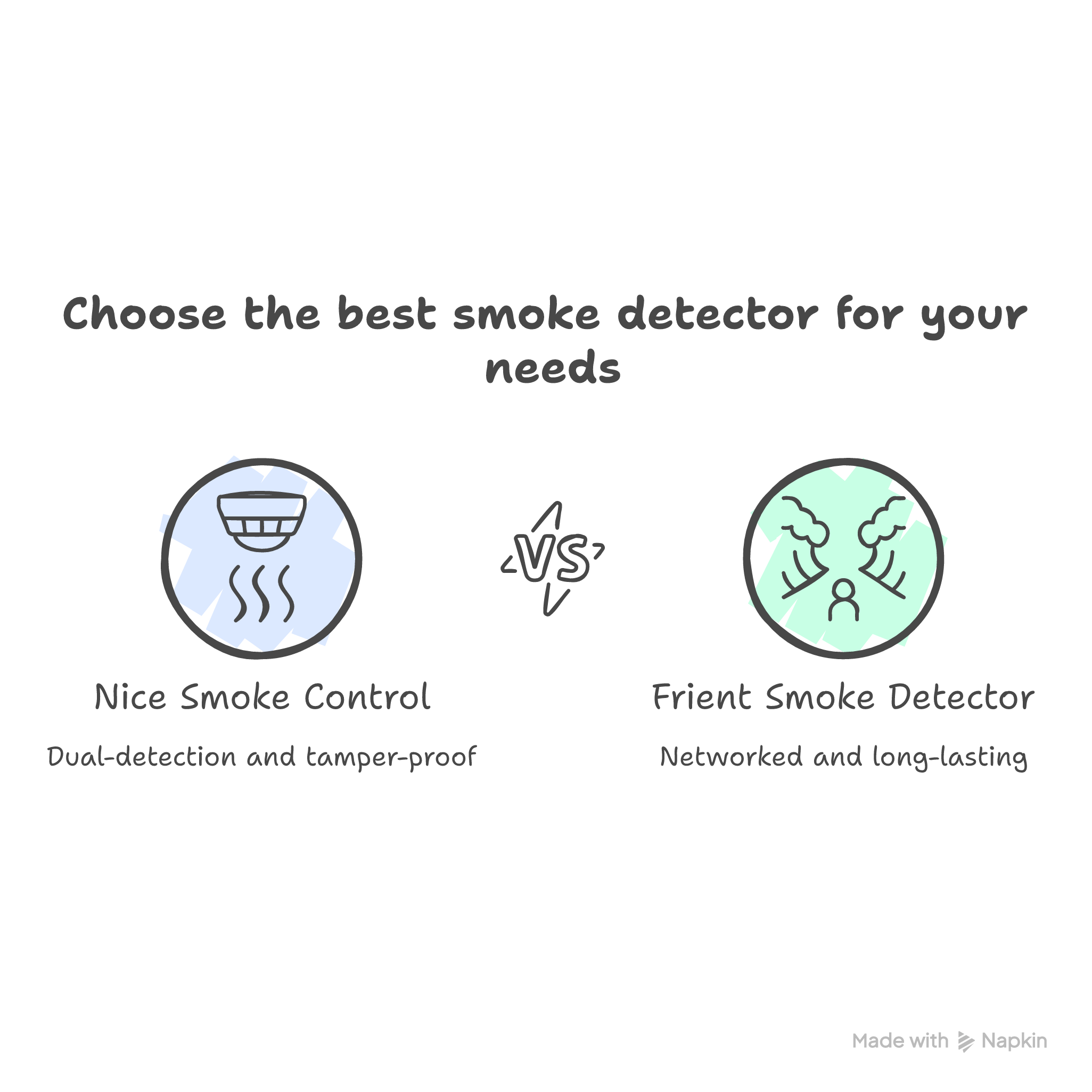 Explore both products in our smart home safety collection to find the fire protection solution that matches your home's unique requirements and your family's peace of mind. Whether you need comprehensive monitoring or reliable simplicity, each detector offers proven smoke co detection capabilities suited to different household protection strategies. Compare the Nice Smoke Control and Zigbee Frient today.