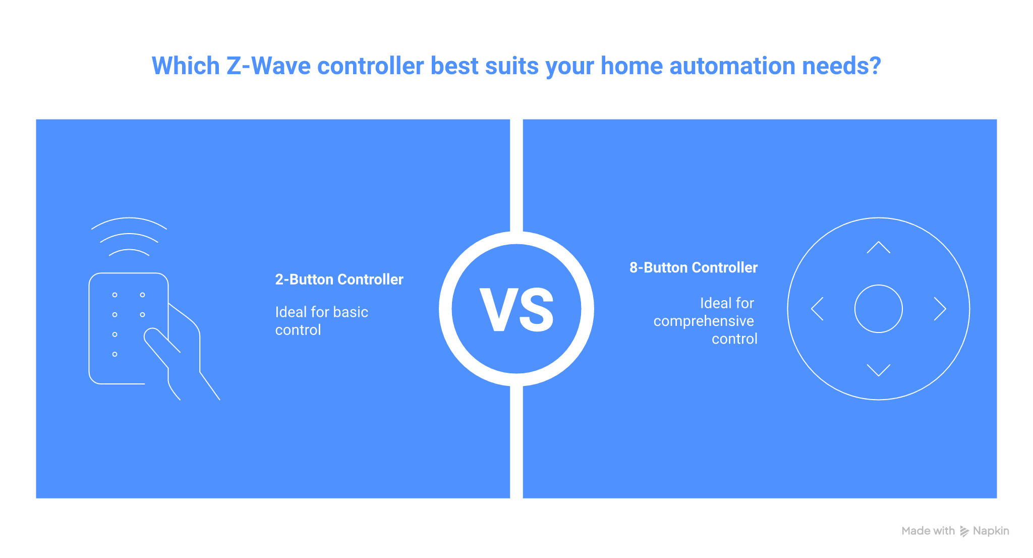This comparison will help you decide between Vesternet's 2-button and 8-button Z-Wave wall controllers, examining their scene activation capabilities, device control limits, and practical applications to determine which delivers the best value for your specific automation needs.
