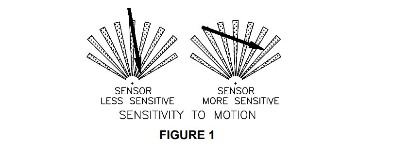 The Motion Detector can be mounted on a wall or ceiling. When selecting a location, avoid placing it facing windows, fans, air conditioners, or direct sunlight. Do not install it above or in front of heat sources such as radiators, boilers, or fireplaces. Ensure the detector is positioned where the detected light reflects actual ambient illumination and avoid shadowed areas. For optimal coverage, mount it so that an intruder’s movement crosses the detection pattern rather than moving directly toward the detector (see Figure 1). For best performance, place the detector facing the entrance.