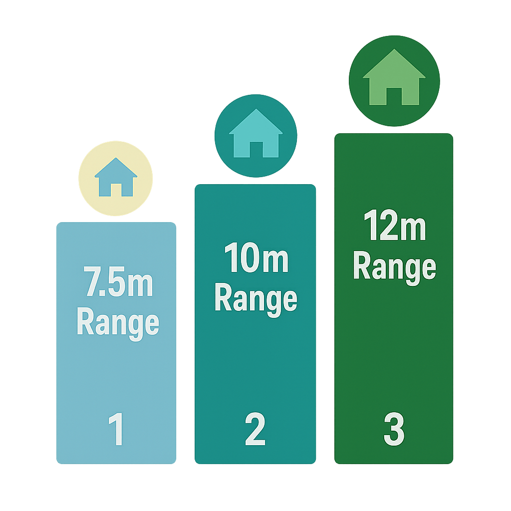La portée de détection varie considérablement selon les systèmes d'alerte de mouvement, avec des options allant d'une couverture compacte de 7,5 mètres adaptée aux petites pièces à des modèles à portée étendue de 12 mètres conçus pour les grands espaces ou la surveillance extérieure. Comprendre l'impact de la portée de détection sur l'efficacité de la couverture permet de placer les capteurs de manière stratégique, optimisant ainsi l'efficacité de la surveillance tout en minimisant le nombre d'appareils nécessaires pour une couverture complète.