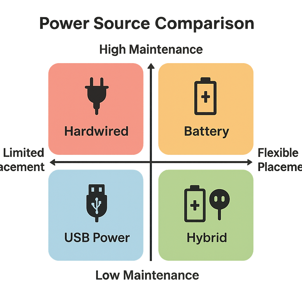 Le choix de la source d'alimentation a un impact significatif sur la flexibilité de l'installation et les besoins de maintenance. Les capteurs alimentés par batterie offrent une liberté de positionnement maximale, tandis que les options câblées assurent une alimentation constante sans souci de remplacement de batterie. L'alimentation USB crée des solutions hybrides alliant praticité et fiabilité pour les applications nécessitant un accès à l'alimentation.