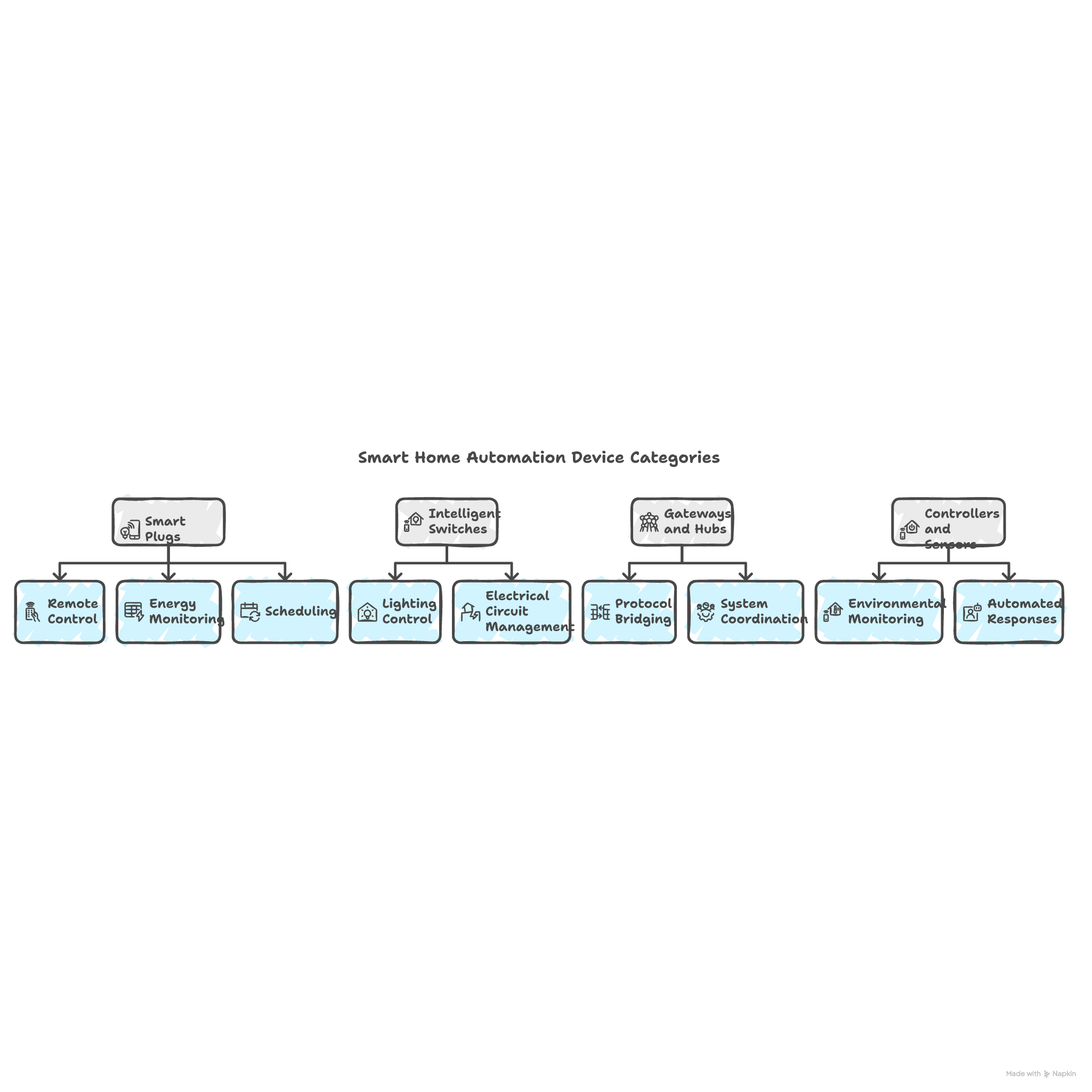 Each device category contributes unique capabilities to overall system functionality through wireless system management protocols. Smart switches provide permanent installation solutions for lighting control, whilst gateways enable communication between different device types and protocols. This layered approach ensures comprehensive coverage of home automation needs whilst maintaining flexibility for future expansion.