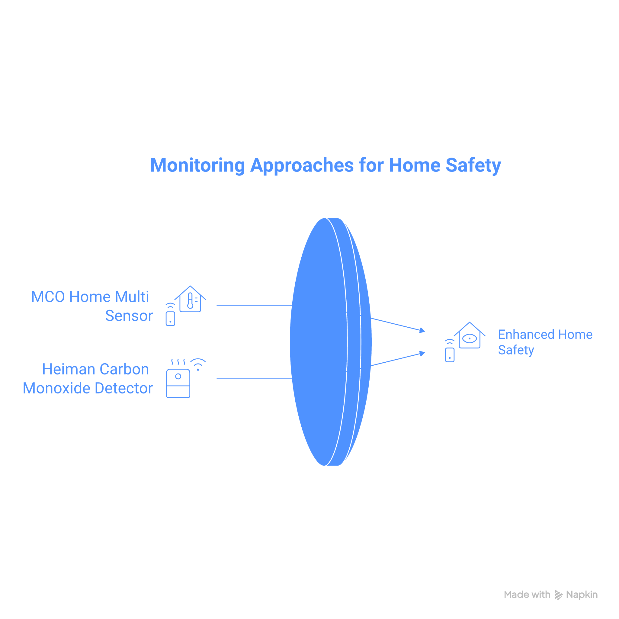 Both devices excel in their respective areas: the MCO Home Multi Sensor provides comprehensive environmental monitoring perfect for those wanting complete home awareness, whilst the Heiman Carbon Monoxide Alarm delivers focused, life-saving protection with modern connectivity. Each represents excellent value within its intended application scope, offering reliable performance and smart home integration.